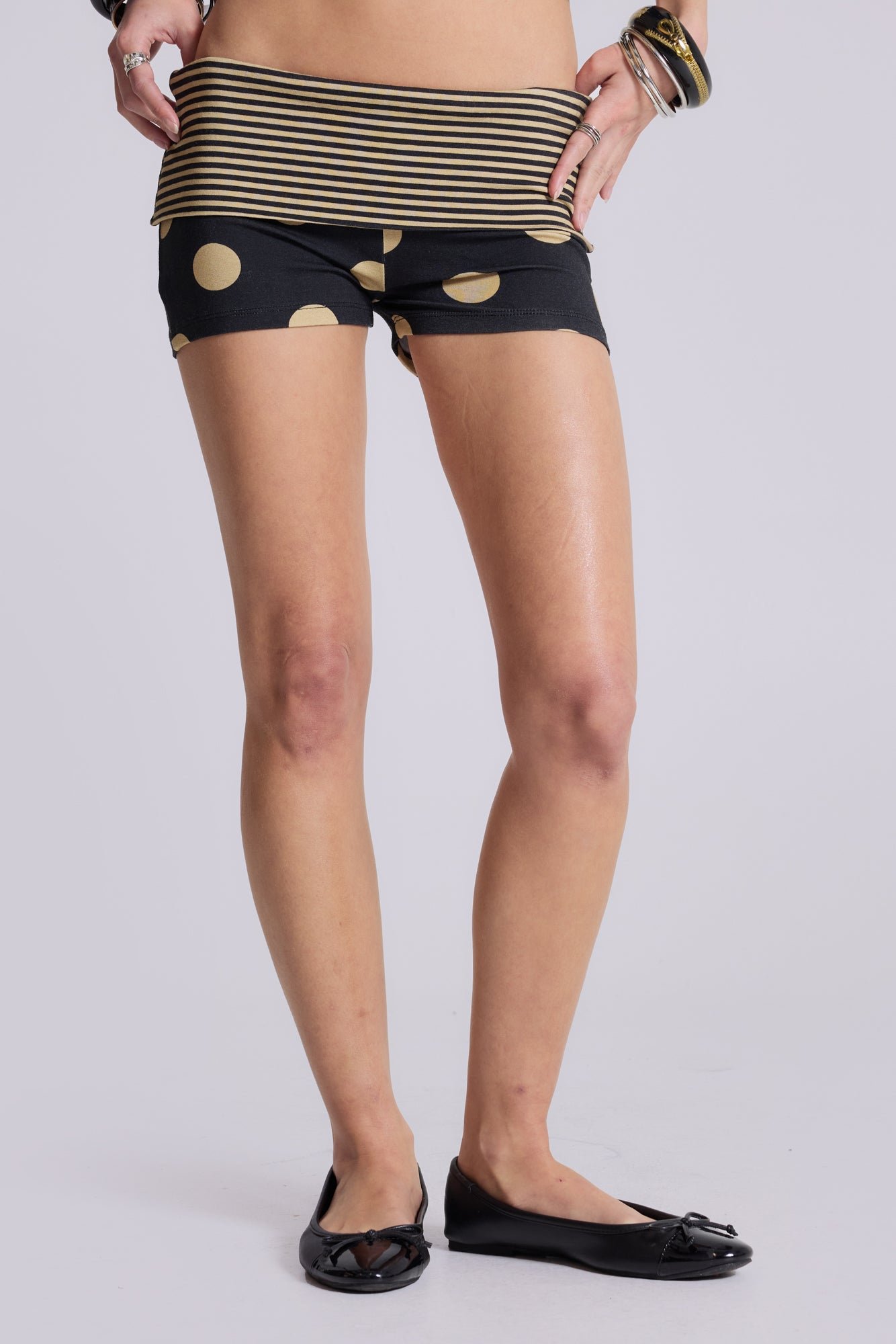 The Lola Polkadot Fold Over Waistband Mini Shorts are designed with a low-slung fold-over waistband in contrast jersey for a clean, considered finish. Cut to a mini length and made to be worn alone or styled with the matching top as part of a co-ord.