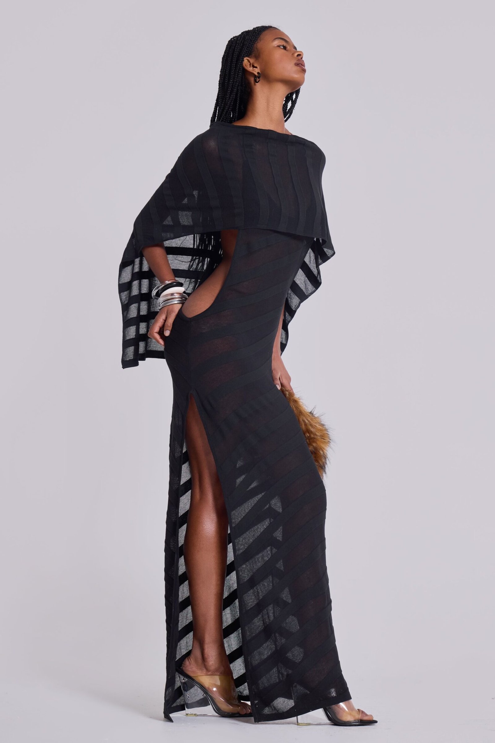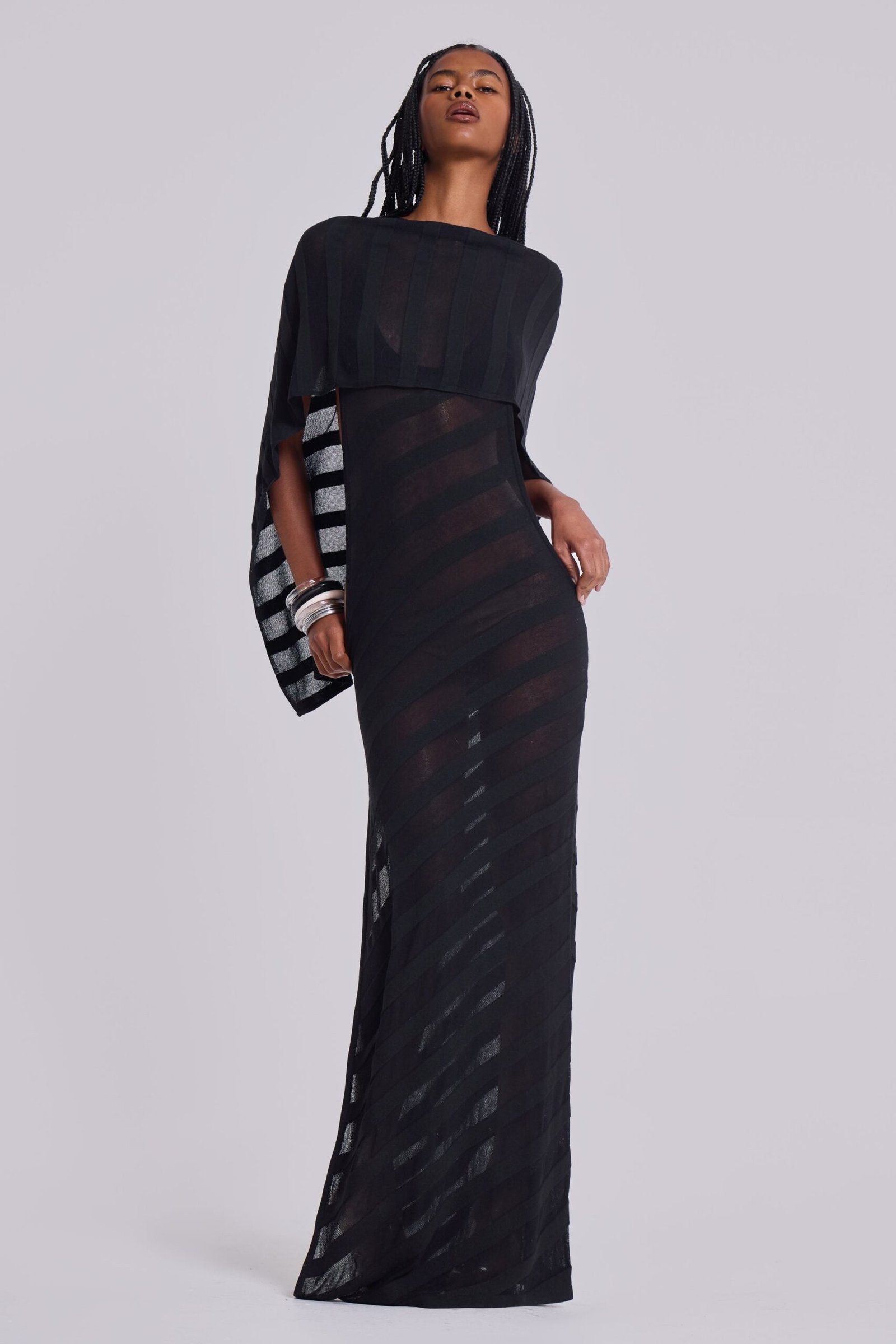 - Sheer striped knit maxi dress