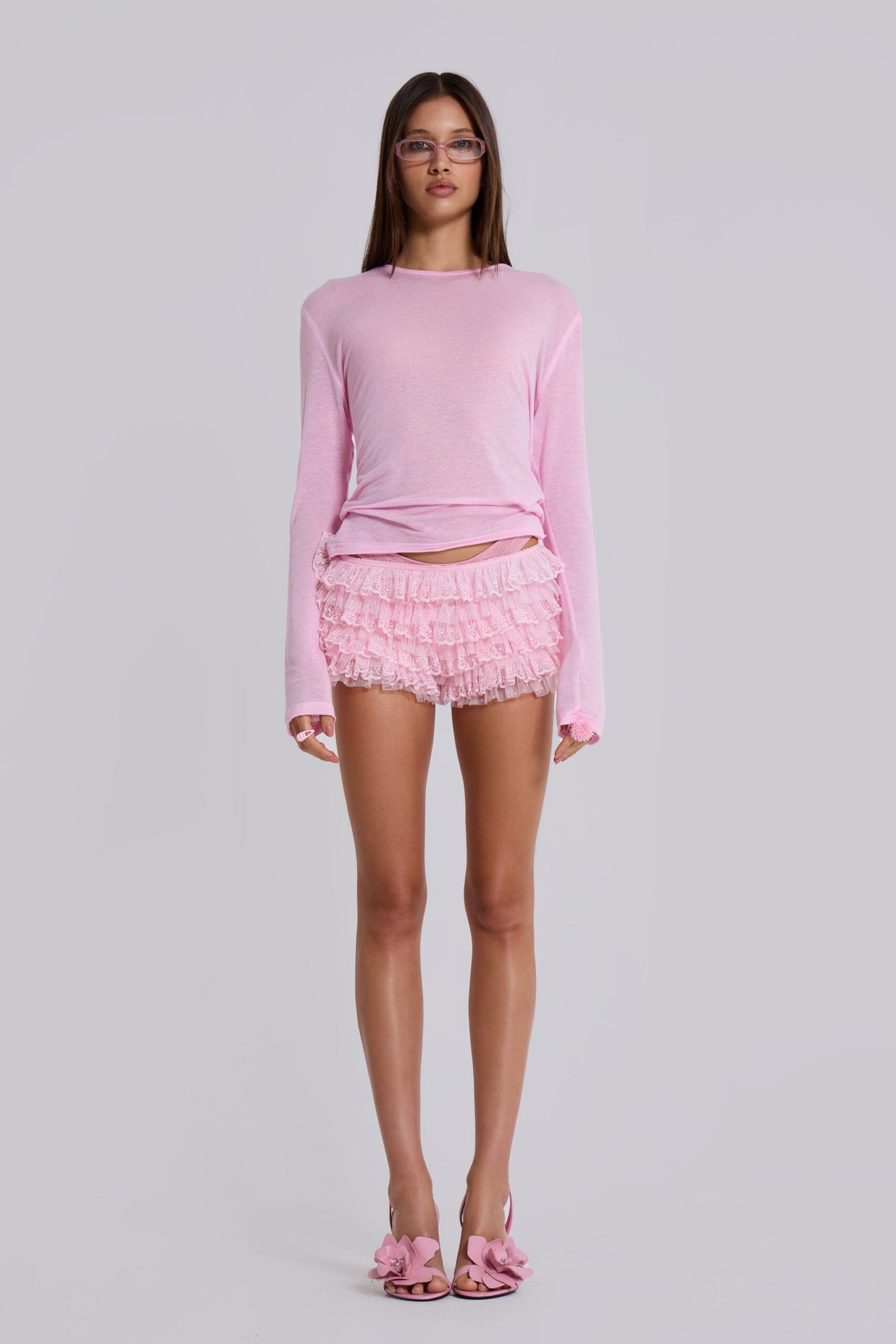 Crafted from a lightweight sheer fabric, the Pink Mist Long Sleeve provides the perfect layering piece. This top has a slightly cropped body with a twisted side seam detail.